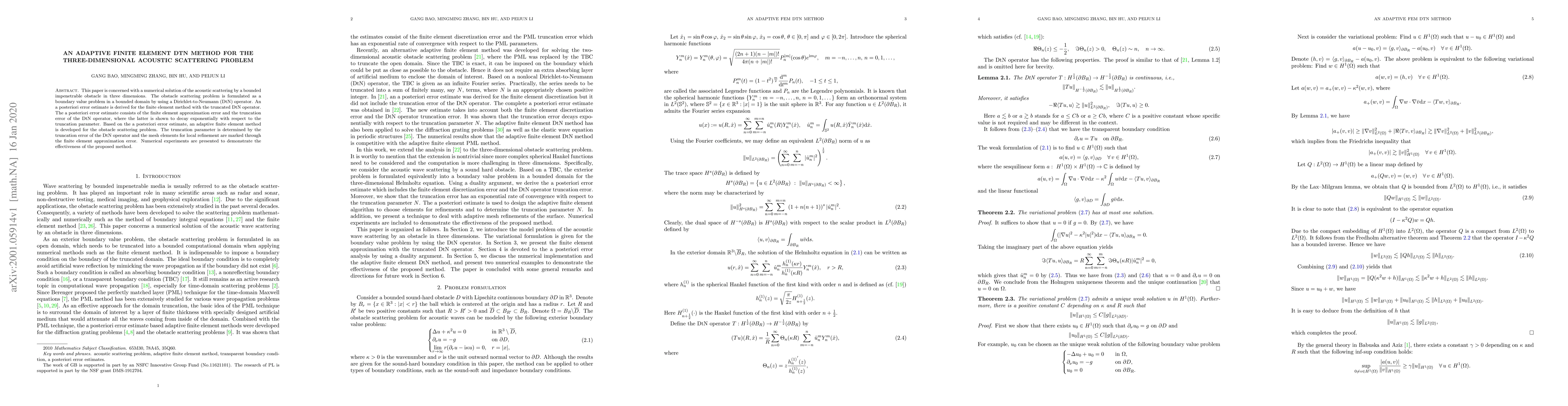 This paper proposes an adaptive finite element DtN method for solving three-dimensional acoustic scattering problems by a bounded obstacle. It introduces an a posteriori error estimate to guide adaptive mesh refinement, demonstrating the method's effectiveness through numerical experiments.