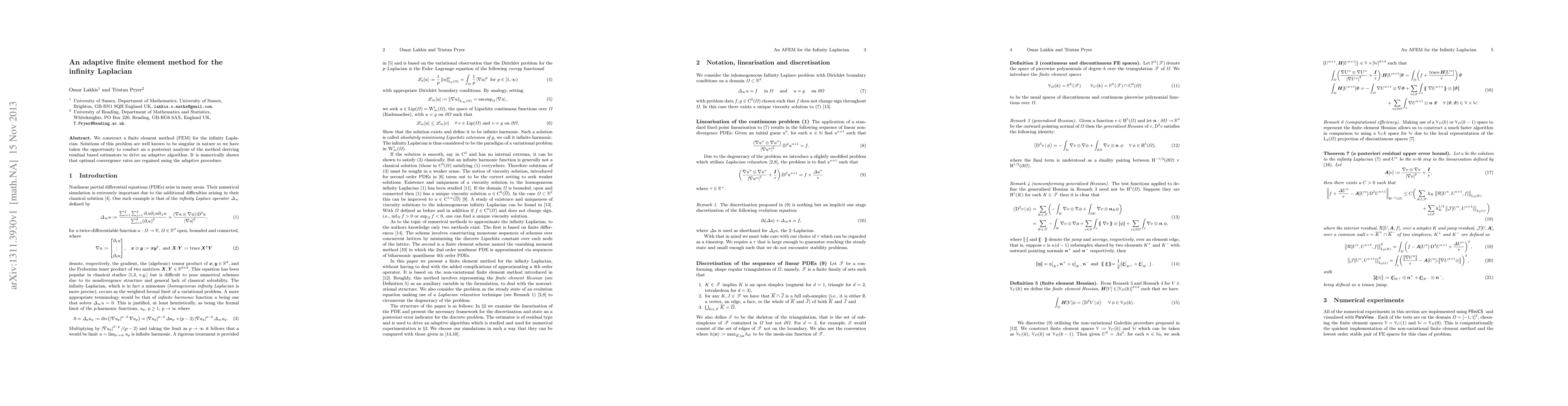 This paper develops an adaptive finite element method for solving the infinity Laplacian, incorporating an a posteriori analysis with residual-based estimators to refine the algorithm. Numerical results demonstrate that the adaptive approach achieves optimal convergence rates.