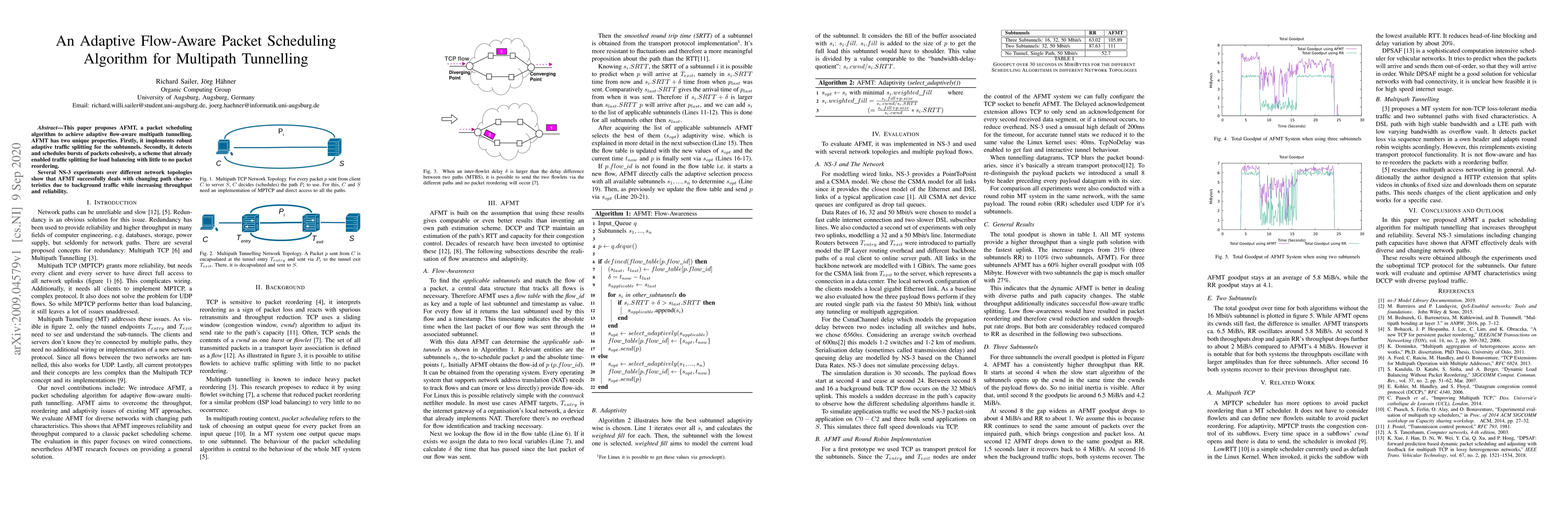 AFMT, a novel packet scheduling algorithm for adaptive flow-aware multipath tunnelling, which effectively deals with diverse and changing network paths.