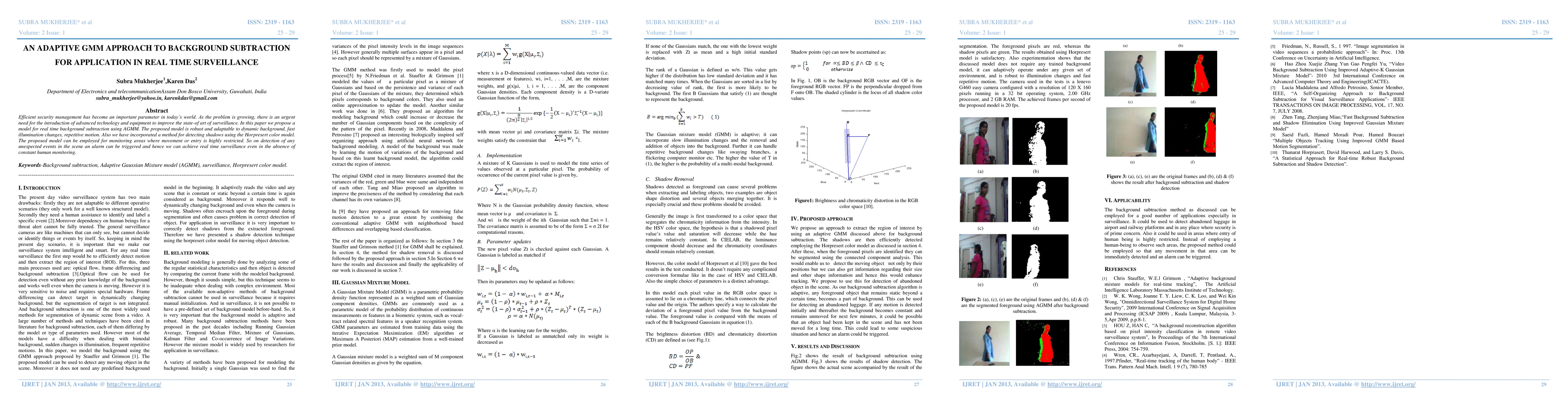 This paper proposes an adaptive GMM approach for real-time background subtraction in surveillance, enabling efficient security management with robust detection of dynamic scenes and unexpected events.