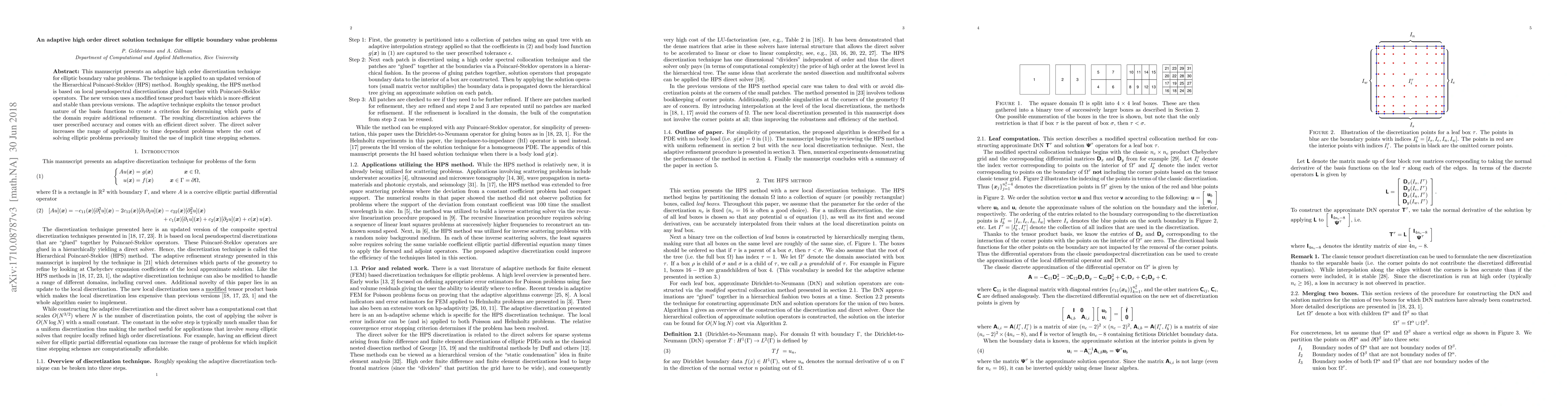This paper presents an adaptive high-order method for solving elliptic boundary value problems, achieving prescribed accuracy with an efficient direct solver that expands to time-dependent problems.