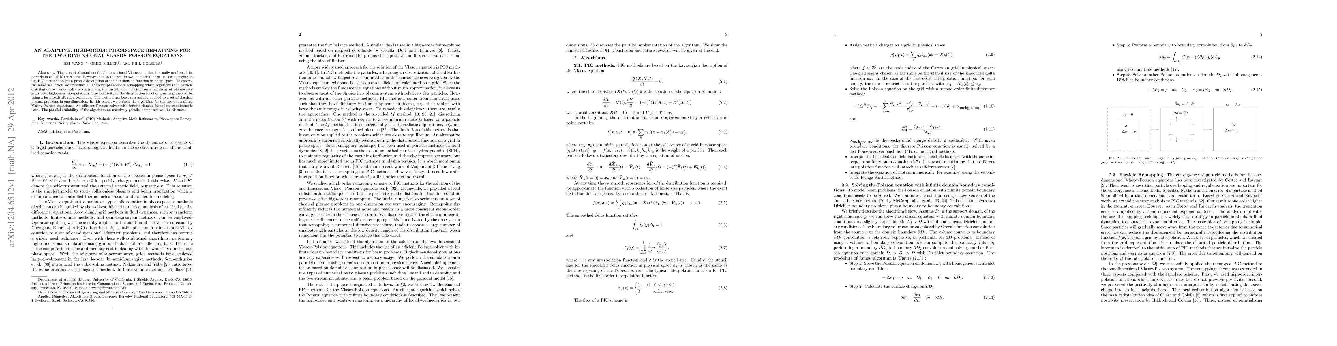 This paper introduces an adaptive, high-order phase-space remapping method to solve the two-dimensional Vlasov-Poisson equations, addressing numerical noise issues in particle-in-cell methods. The method uses hierarchical grids and high-order interpolations to reconstruct the distribution function while preserving its positivity through local redistribution.