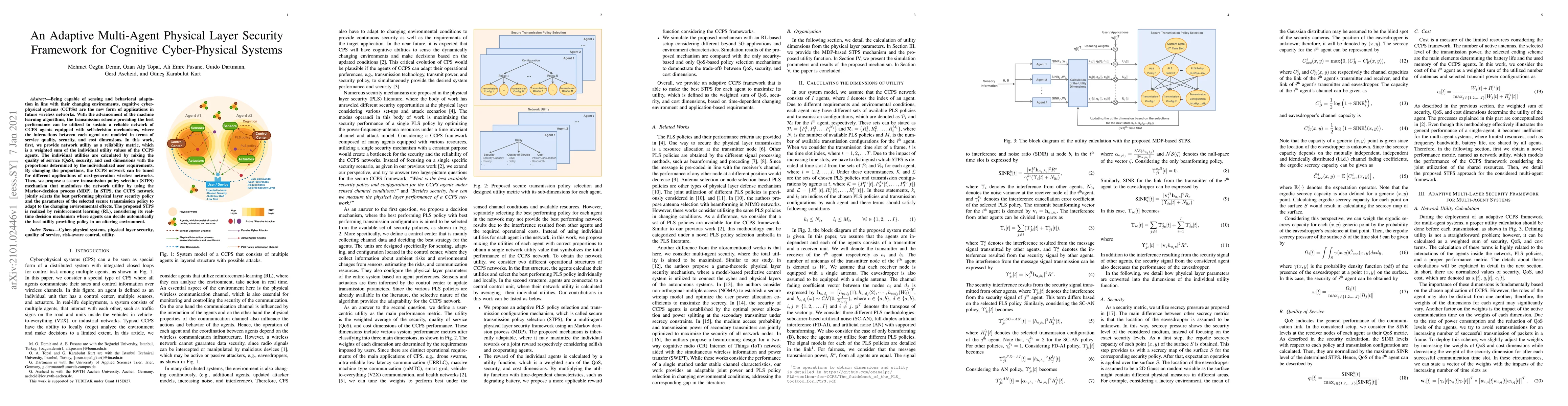 This research paper proposes an adaptive security framework for cognitive cyber-physical systems, enabling self-decision mechanisms and real-time policy selection to maximize network utility and reliability.