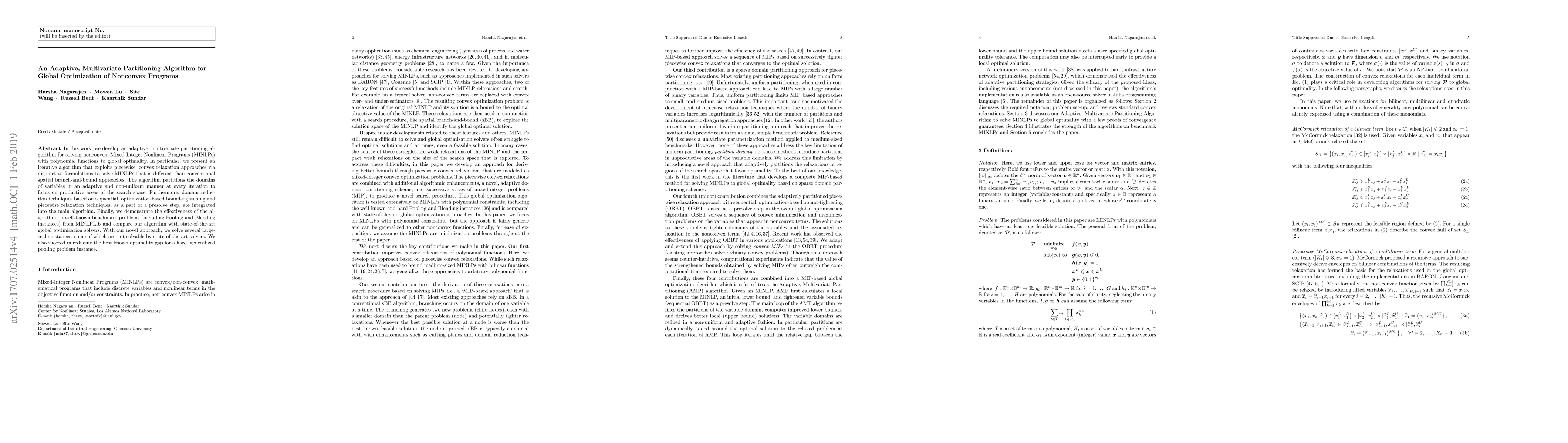 This paper introduces an adaptive, multivariate partitioning algorithm for solving mixed-integer nonlinear programs (MINLP) to global optimality using piecewise polyhedral relaxations. The algorithm adaptively partitions variable domains to maintain small-scale mixed-integer linear programs, demonstrating effectiveness on benchmark problems and shrinking the optimality gap for complex instances.
