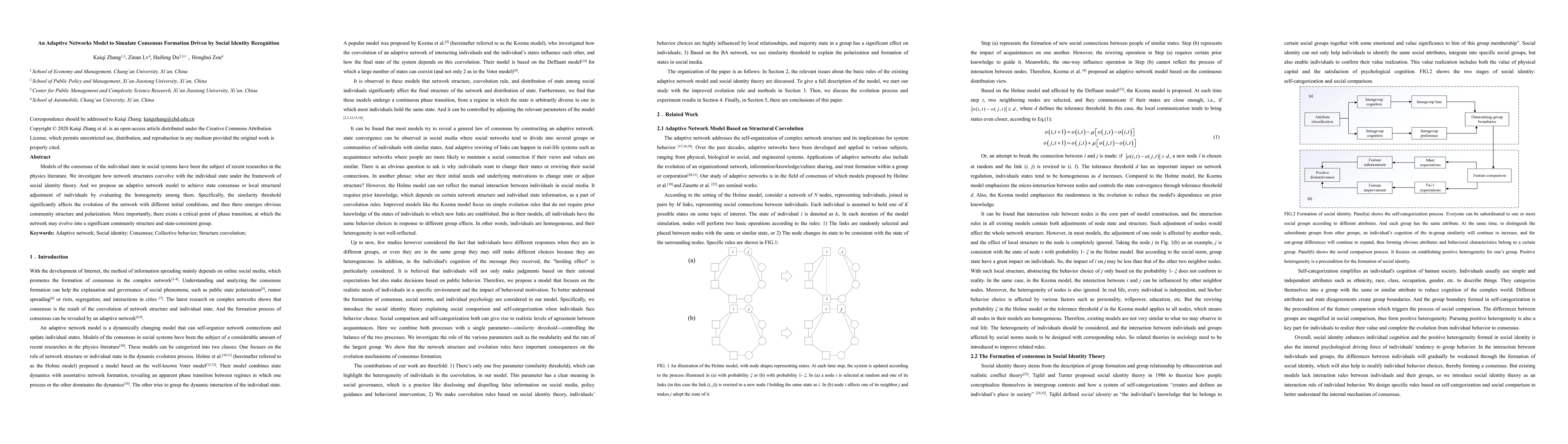 This paper proposes an adaptive network model to simulate consensus formation driven by social identity recognition, showing how network structures coevolve with individual states. The model reveals a critical phase transition point, leading to community formation and polarization based on the similarity threshold.
