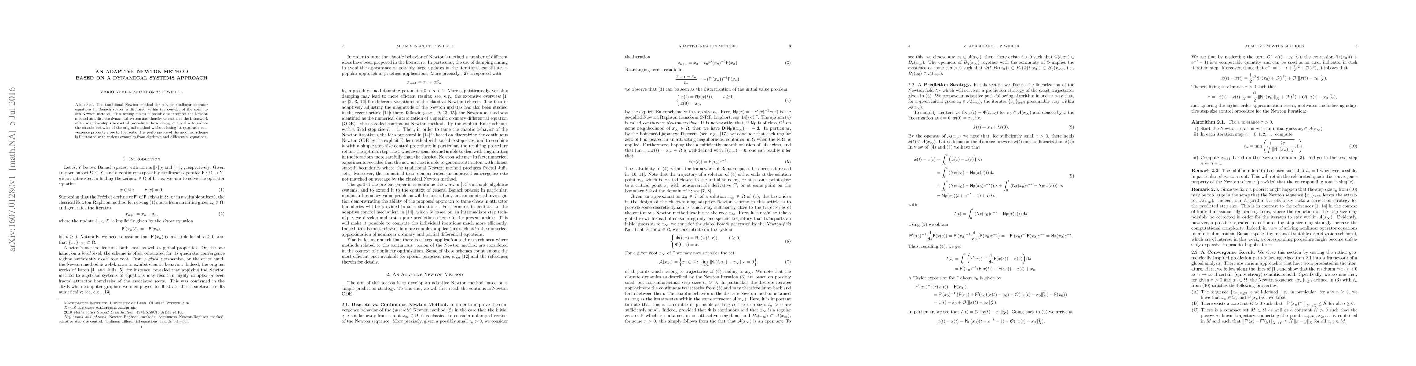 The traditional Newton method for solving nonlinear operator equations in Banach spaces is discussed within the context of the continuous Newton method. This setting makes it possible to interpret the Newton method as a discrete dynamical system and thereby to cast it in the framework of an adaptive step size control procedure. In so doing, our goal is to reduce the chaotic behavior of the original method without losing its quadratic convergence property close to the roots. The performance of the modified scheme is illustrated with various examples from algebraic and differential equations.
