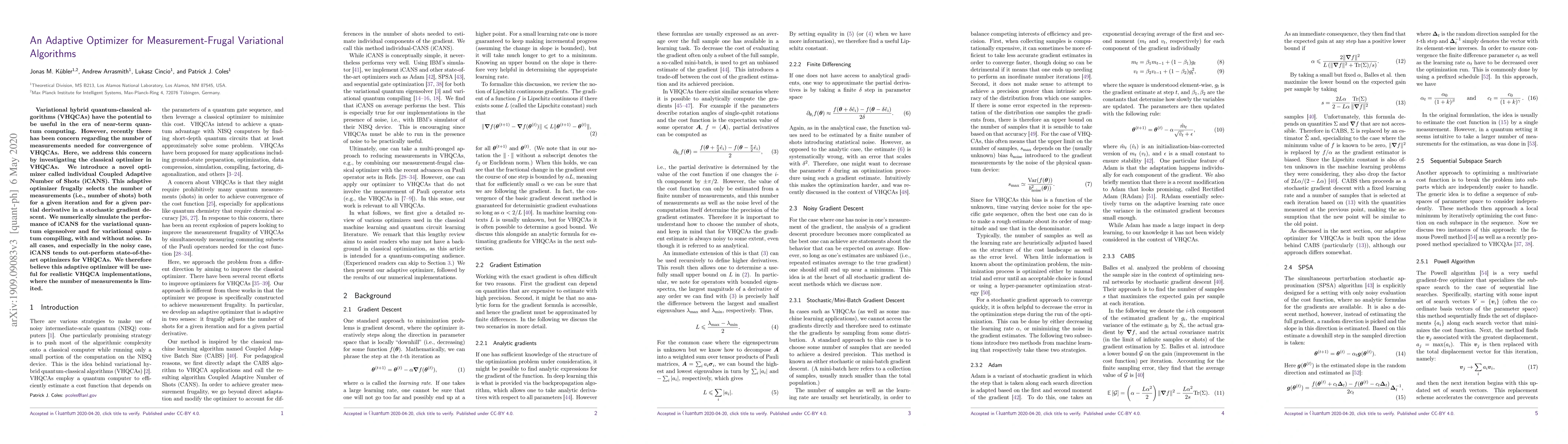 This adaptive optimizer is crucial for near-term quantum computing, where the number of measurements is limited, and hardware noise is prevalent.