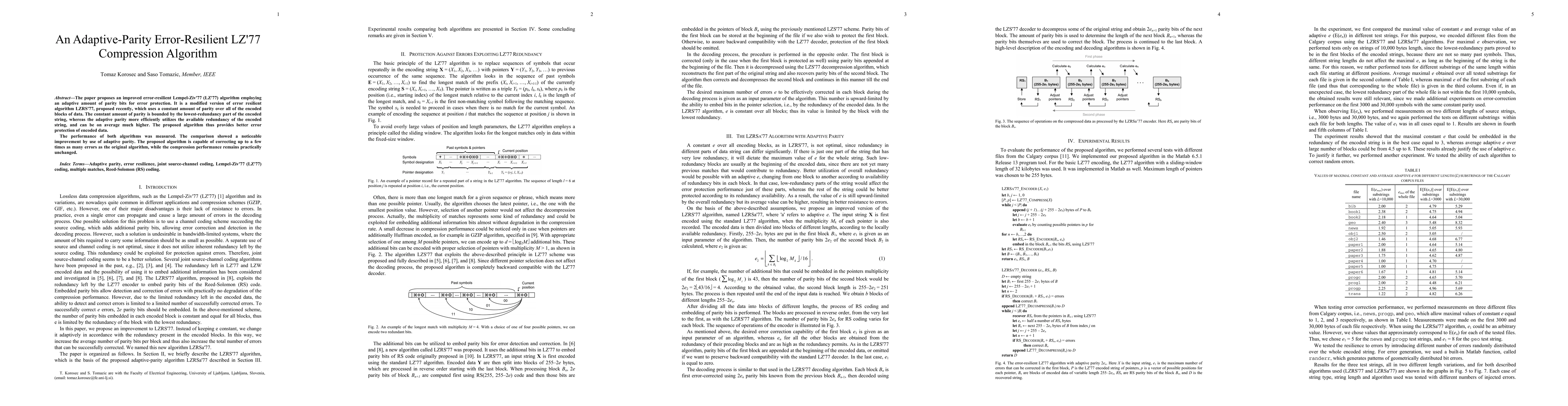 An improved version of the error-resilient LZ'77 data compression scheme was presented.