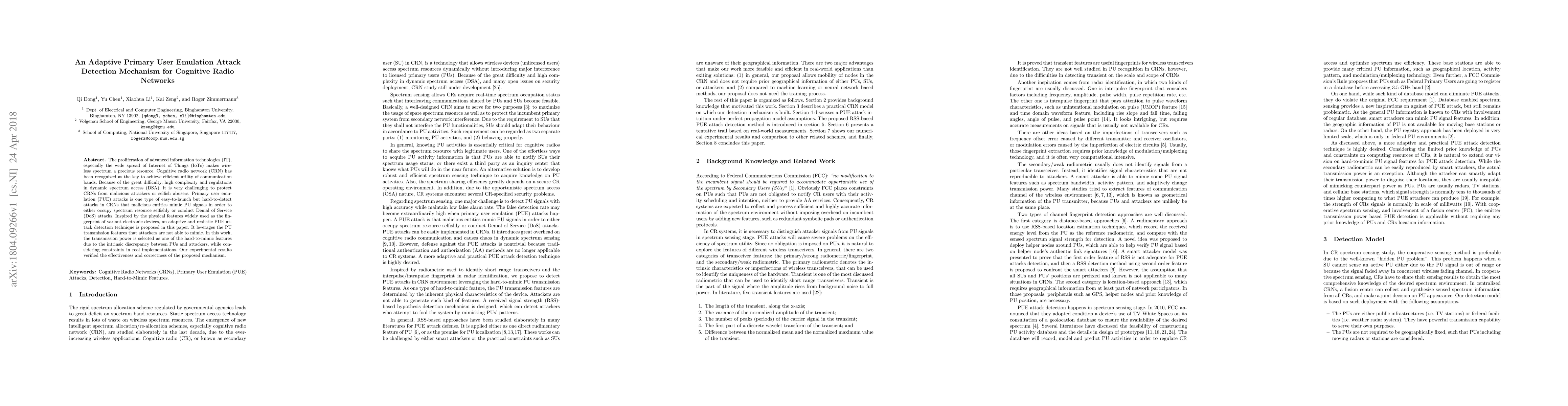Researchers propose an adaptive detection mechanism to prevent Primary User Emulation (PUE) attacks in Cognitive Radio Networks, leveraging unique features of legitimate users that attackers struggle to mimic.