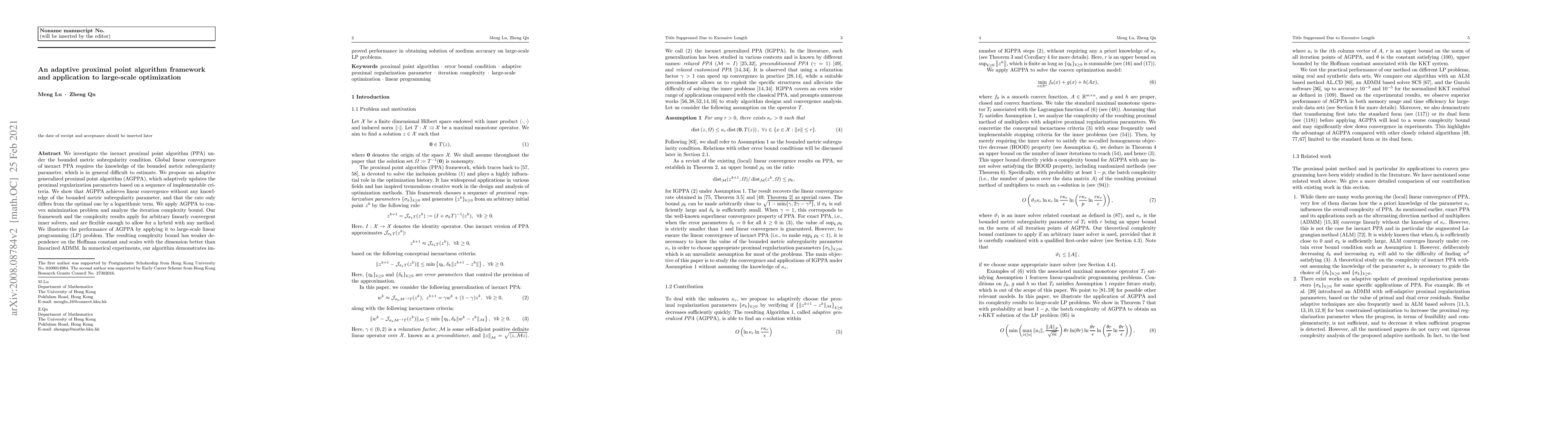 A new adaptive algorithm framework called AGPPA is proposed for large-scale optimization problems, achieving linear convergence without needing knowledge of the error bound condition parameter.