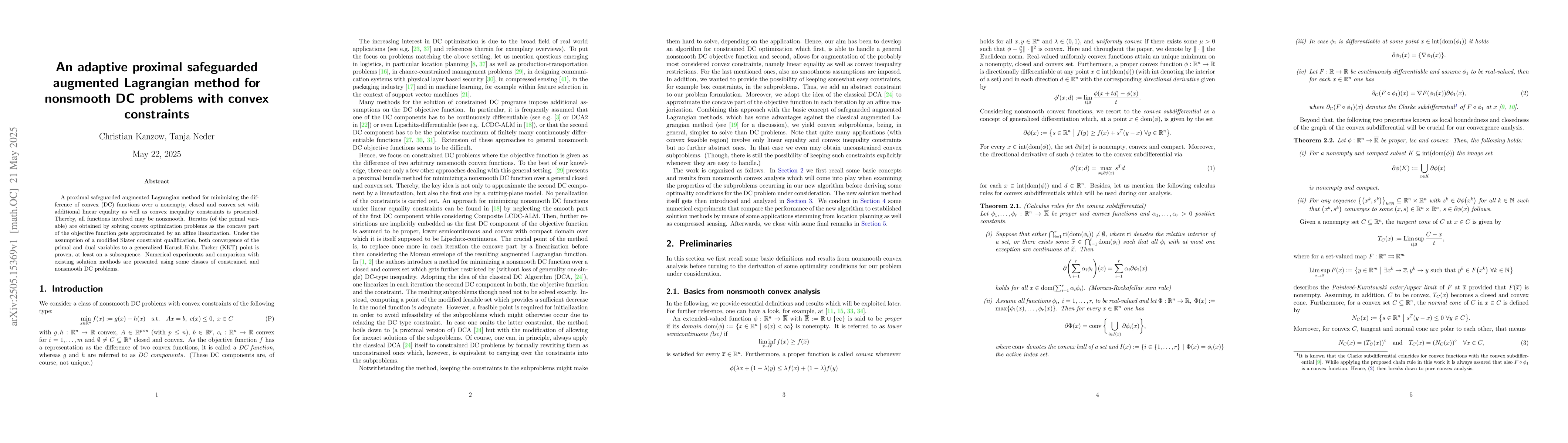 The paper presents an adaptive proximal safeguarded augmented Lagrangian method for minimizing difference of convex (DC) functions under nonsmoothness and various constraints.