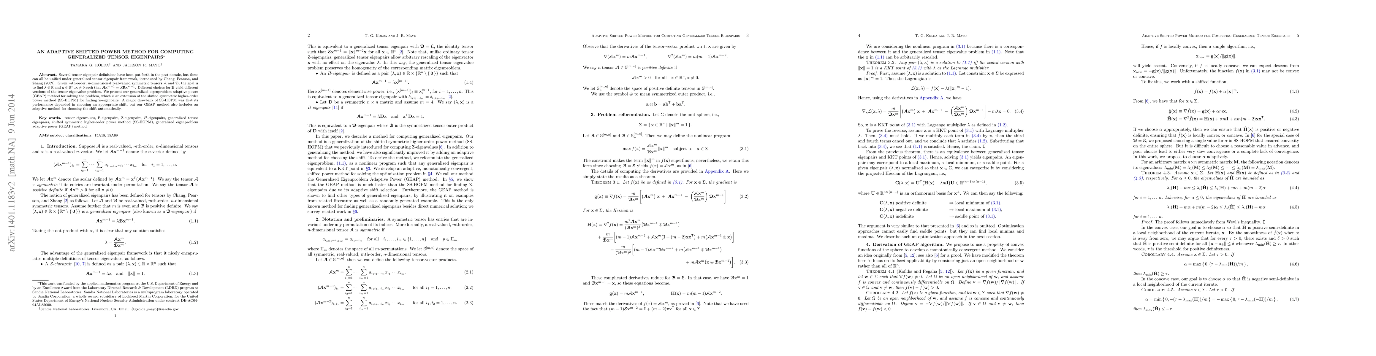 This paper introduces a generalized eigenproblem adaptive power method (GEAP) for computing generalized tensor eigenpairs, extending the shifted symmetric higher-order power method (SS-HOPM). The GEAP method includes an adaptive mechanism to automatically select the shift, improving performance over the original SS-HOPM.