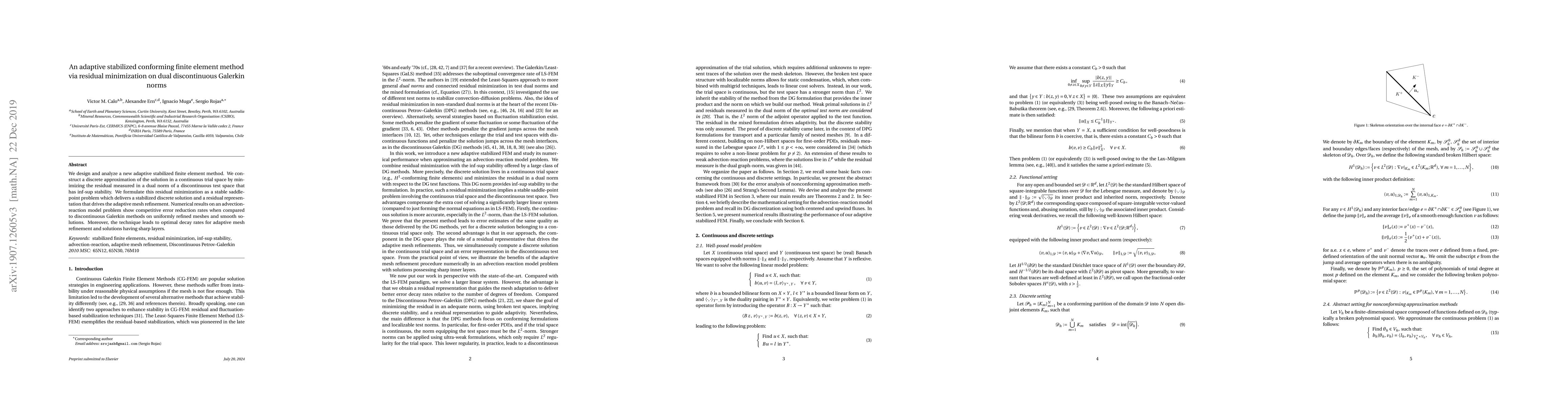 This paper introduces a novel adaptive stabilized finite element method based on residual minimization in dual discontinuous Galerkin norms, achieving competitive error reduction and optimal decay rates for adaptive mesh refinement, especially for problems with sharp solution layers. Numerical results demonstrate its effectiveness against traditional discontinuous Galerkin methods.