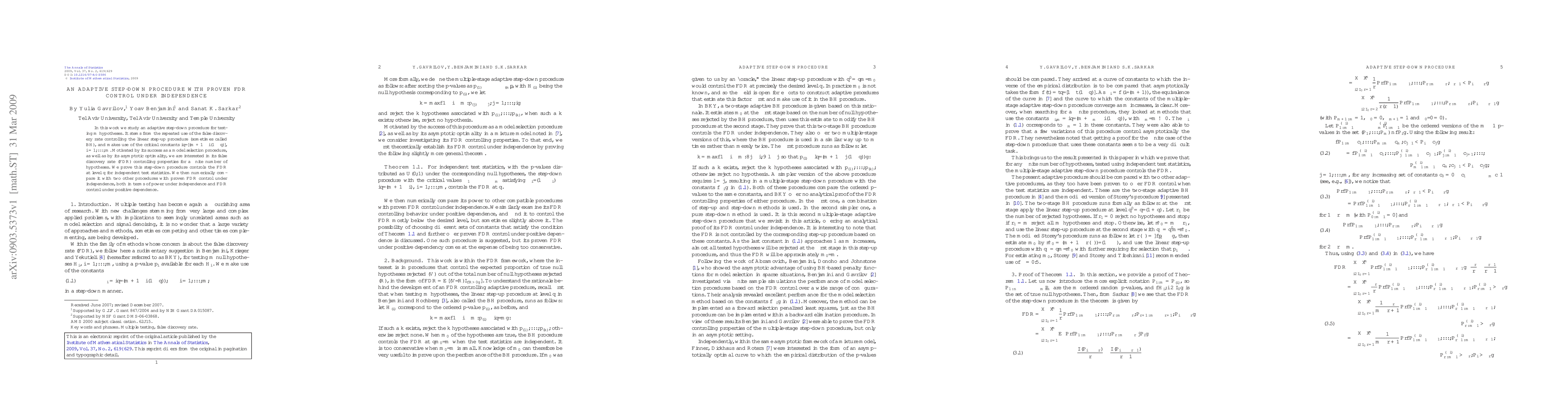 This paper introduces an adaptive step-down procedure for testing multiple hypotheses, proving its false discovery rate (FDR) control under independence. It compares the procedure's performance with other methods in terms of power and FDR control under both independence and positive dependence.