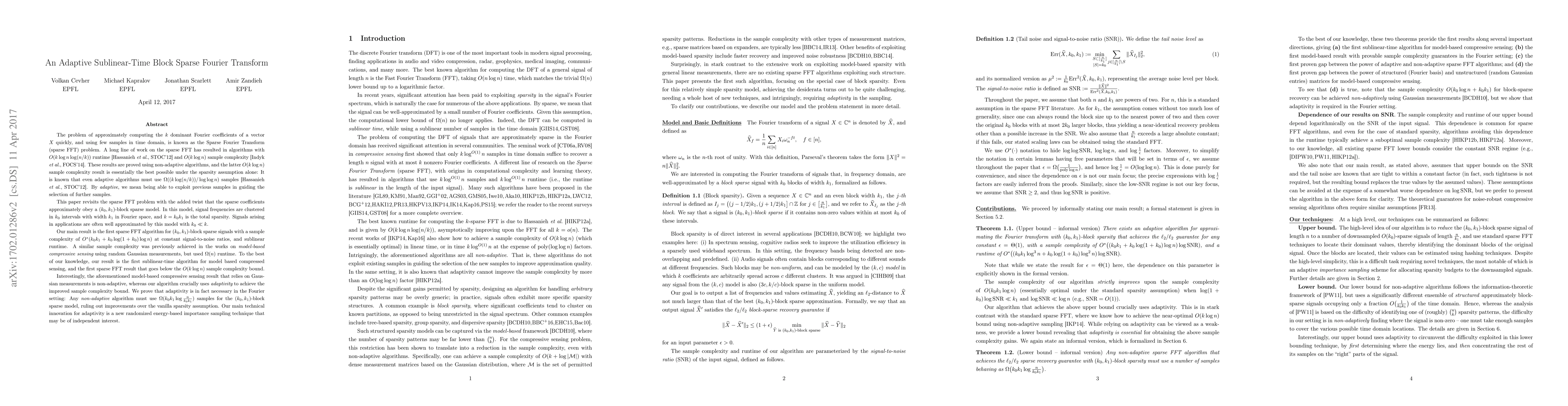 This paper presents an adaptive sublinear-time algorithm for computing the $k$ dominant Fourier coefficients of $(k_0, k_1)$-block sparse signals, achieving sample complexity of $O^*(k_0k_1 + k_0\log(1+ k_0)\log n)$ and sublinear runtime, outperforming previous non-adaptive algorithms.