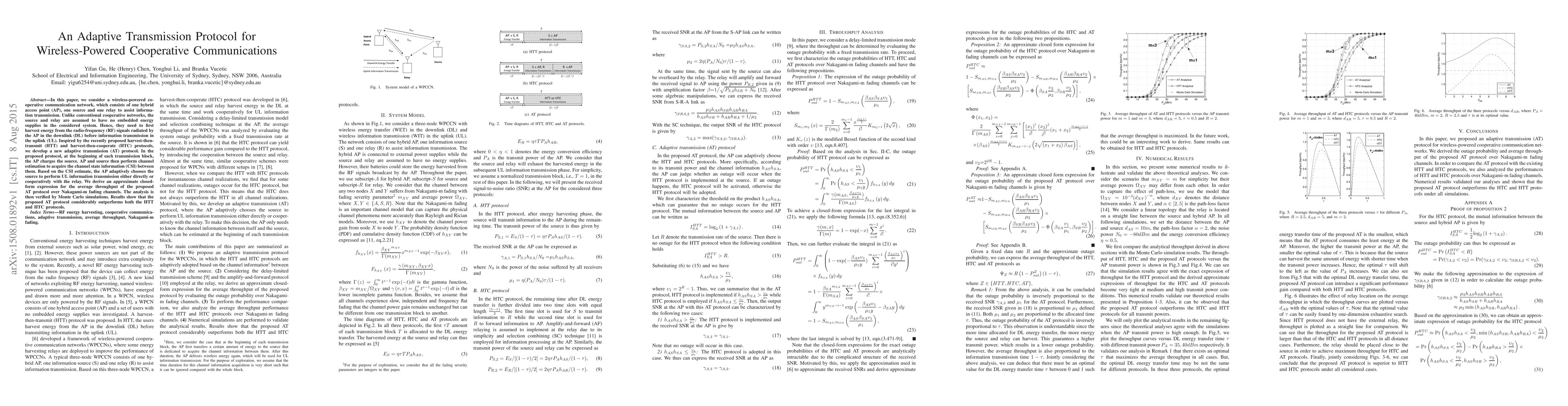 This paper proposes an adaptive transmission protocol for wireless-powered cooperative communication networks, where the source and relay harvest energy from the AP before transmitting. The protocol outperforms existing harvest-then-transmit and harvest-then-cooperate protocols by adaptively choosing direct or cooperative uplink transmission based on channel state information.