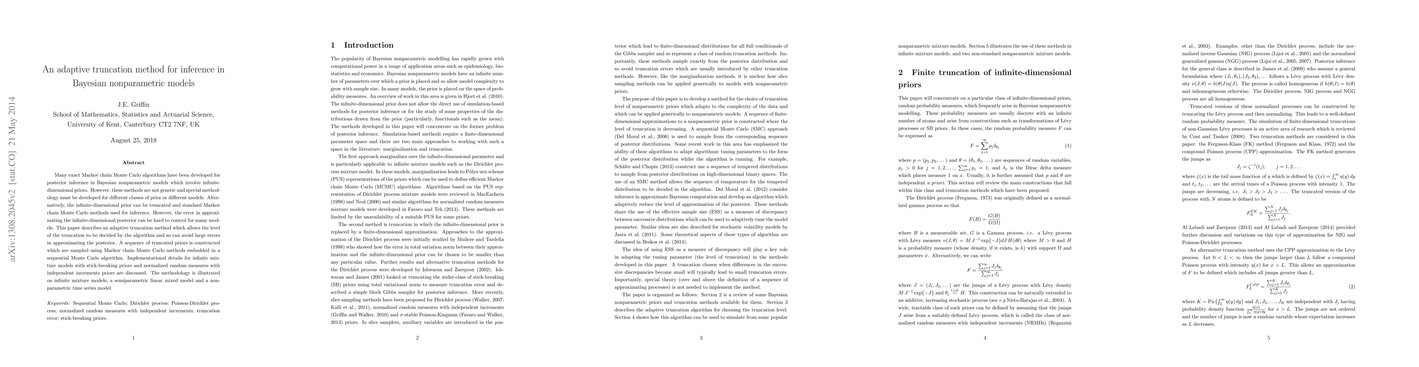 This paper proposes an adaptive truncation method for Bayesian nonparametric models, allowing the truncation level to be dynamically adjusted to minimize approximation errors. The method constructs a sequence of truncated priors sampled via Markov chain Monte Carlo within a sequential Monte Carlo framework, demonstrating its effectiveness on infinite mixture models, semiparametric linear mixed models, and nonparametric time series models.
