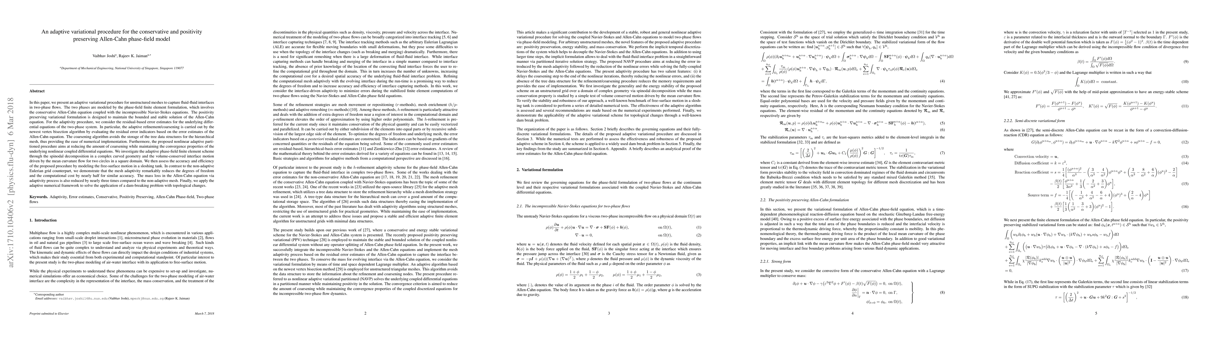 This paper introduces an adaptive variational procedure for the Allen-Cahn phase-field model on unstructured meshes to simulate fluid-fluid interfaces in two-phase flows. The method uses adaptive refinement/coarsening based on residual error estimates to maintain solution stability and reduce computational costs while maintaining accuracy.
