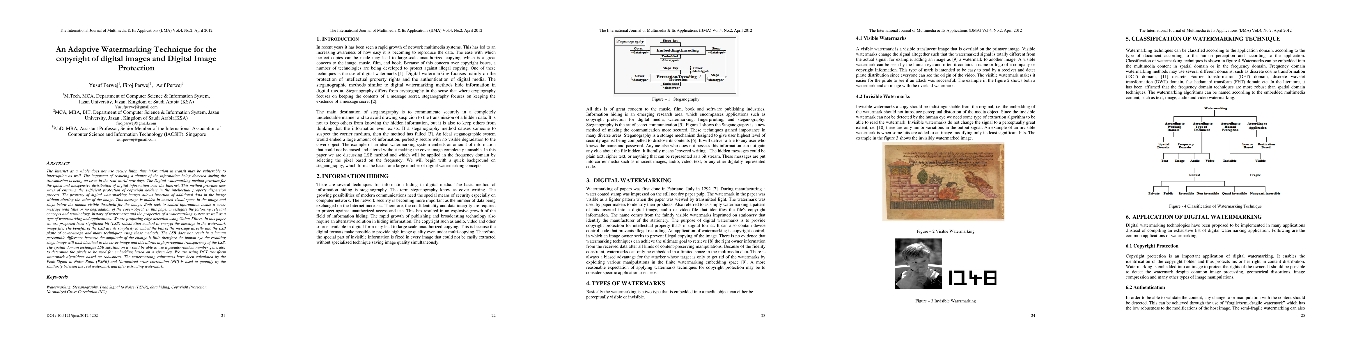 This paper proposes an adaptive watermarking technique for protecting digital images, focusing on embedding watermarks using the least significant bit (LSB) substitution method and edge detection via Gabor Filters. The method ensures high perceptual transparency and robustness, quantified by Peak Signal to Noise Ratio (PSNR) and Normalized cross correlation (NC).