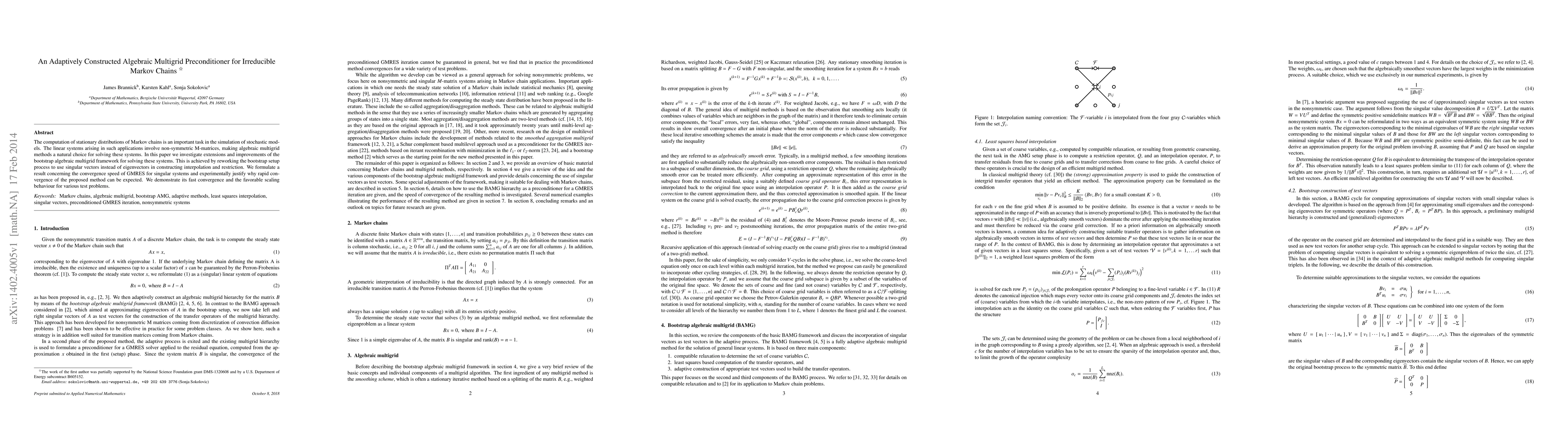 A new method is proposed for solving linear systems arising from Markov chains using algebraic multigrid methods, with improved convergence speed and scaling behavior.