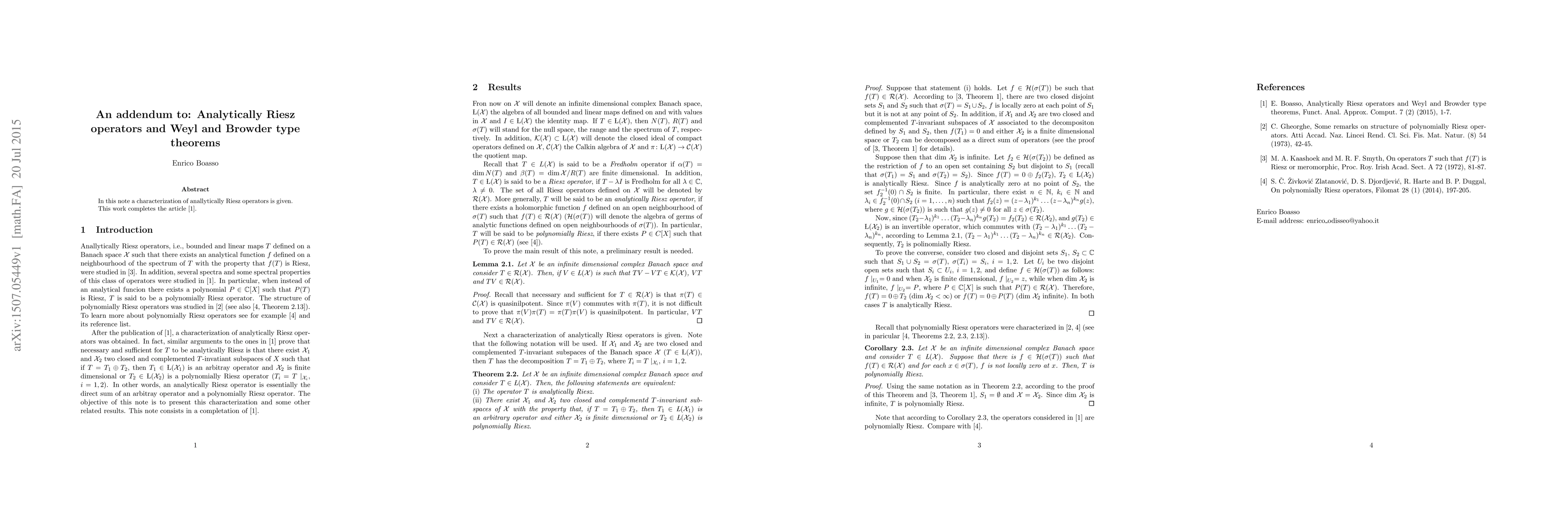 In this note a characterization of anallytically Riesz operators is given. This work completes the article [1].