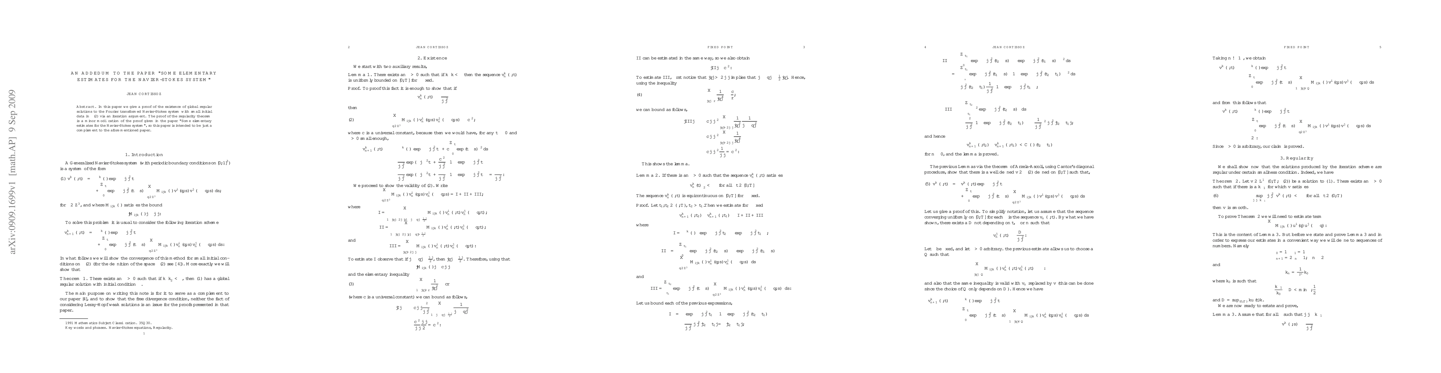 In this paper we give a proof of the existence of global regular solutions to the Fourier transformed Navier-Stokes system with small initial data in $\Phi(2)$ via an iteration argument. The proof of the regularity theorem is a minor modification of the proof given in the paper "Some elementary estimates for the Navier-Stokes system". So this paper is intended to be just a complement to the afore mentioned paper.