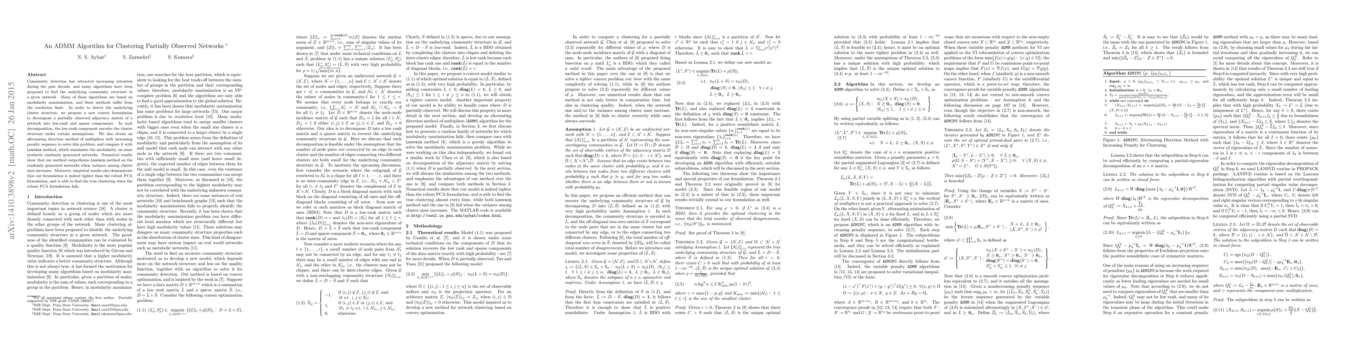 The paper introduces a new convex approach using ADMM to identify community structures in partially observed networks by decomposing adjacency matrices into low-rank and sparse parts. It outperforms traditional methods like Louvain, especially in networks with varied cluster sizes, and more accurately detects true communities when other techniques fail.