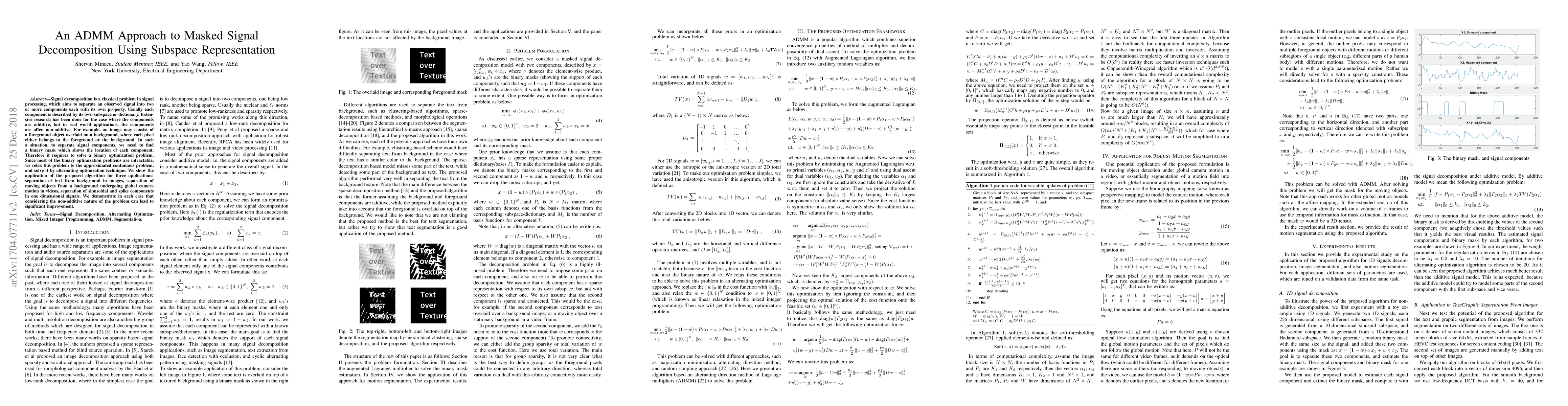 Researchers propose a novel algorithm using Alternating Direction Method of Multipliers (ADMM) for decomposing signals into non-additive components, enabling separation of objects from backgrounds in images and videos.