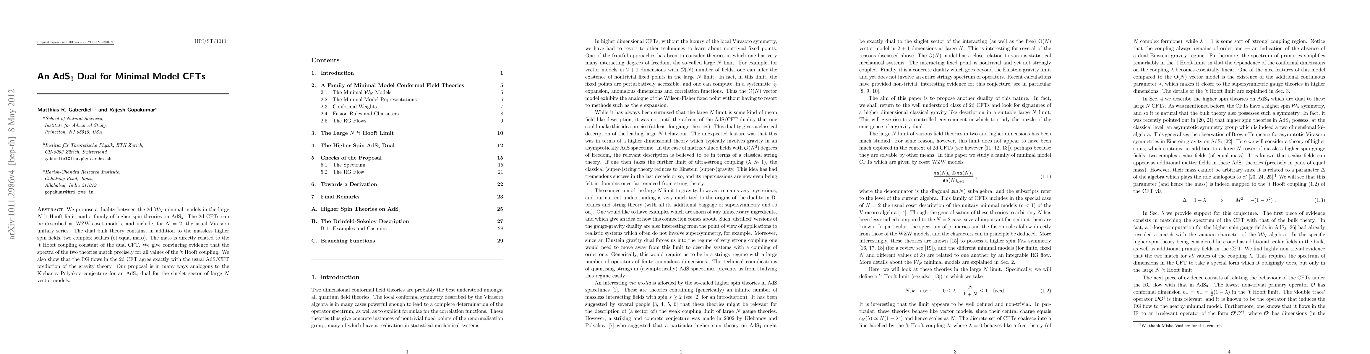 This paper proposes a duality between 2d W_N minimal models and higher spin theories in AdS_3, showing that the spectra and RG flows match precisely, analogous to the Klebanov-Polyakov conjecture for AdS_4 duals in 3d. The dual bulk theory includes massless higher spin fields and two complex scalars.