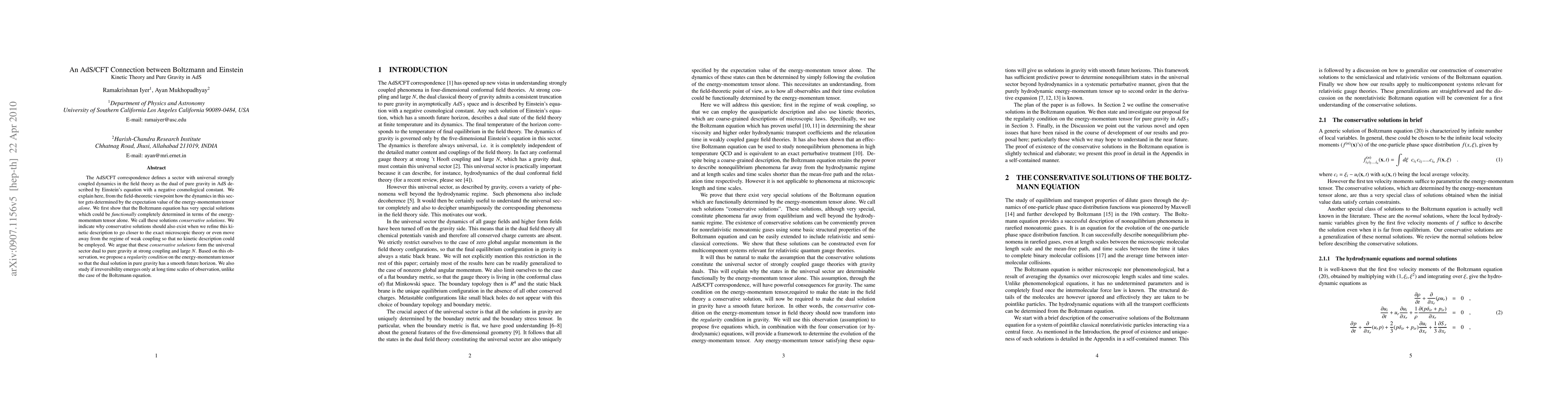 This paper explores the AdS/CFT correspondence, demonstrating how the dynamics of a universal sector in strongly coupled field theory are determined by the energy-momentum tensor. It proposes that "conservative solutions" of the Boltzmann equation, which are fully determined by the energy-momentum tensor, represent the dual to pure gravity at strong coupling and large $N$.
