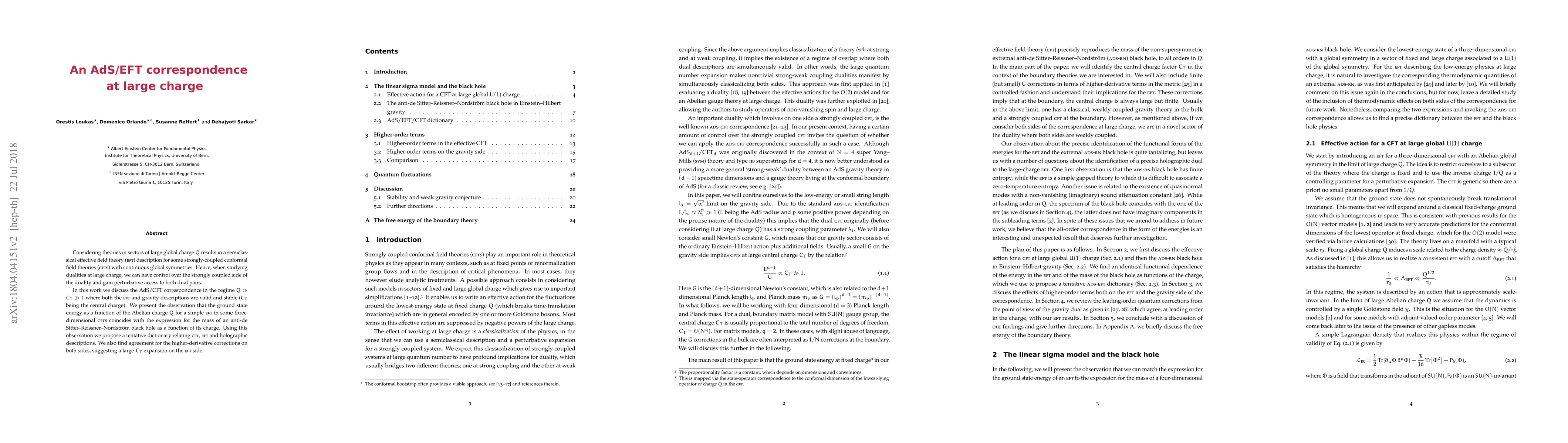 This paper explores the AdS/CFT correspondence in the regime of large global charge $Q$, establishing a semiclassical effective field theory (EFT) description for strongly-coupled conformal field theories (CFTs). It finds a dictionary relating CFT, EFT, and holographic descriptions, with the ground state energy of the EFT matching the mass of an AdS-Reissner-Nordström black hole.