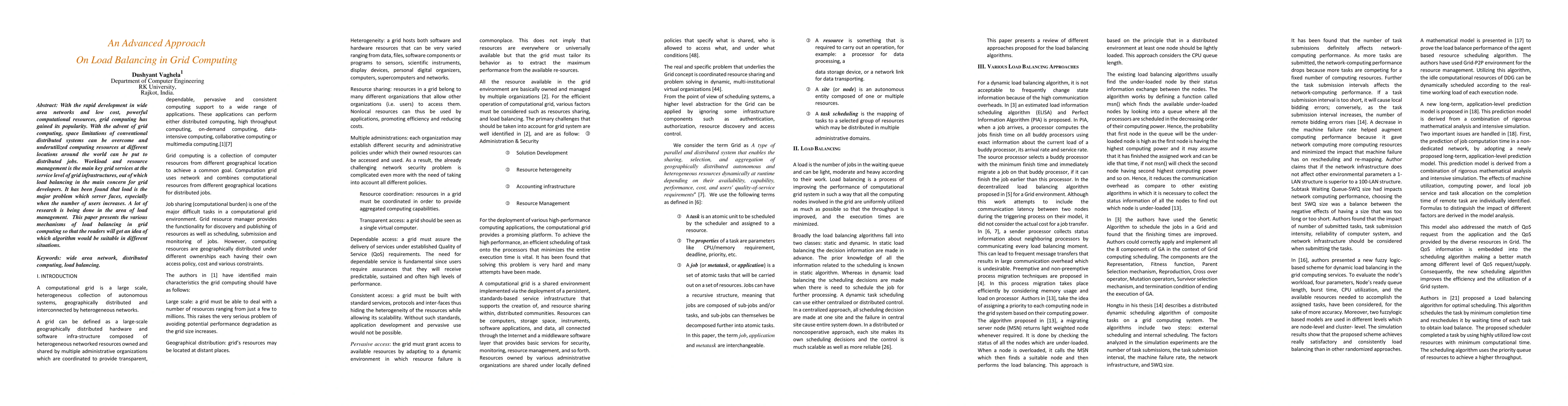 This paper explores advanced load balancing techniques in grid computing, addressing the challenges of managing workloads and underutilized resources across global networks. It evaluates various algorithms to determine the most suitable ones for different scenarios, emphasizing the importance of effective load balancing in grid infrastructures. Keywords: wide area network, distributed computing, load balancing.