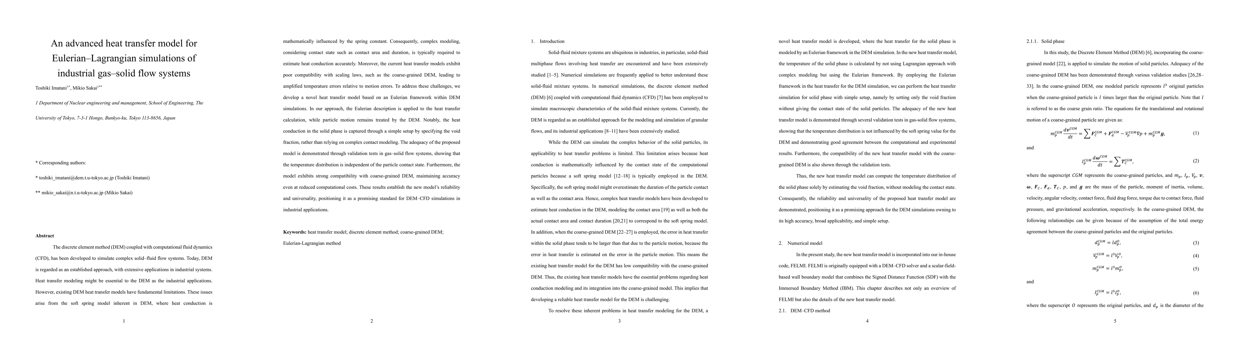 The discrete element method (DEM) coupled with computational fluid dynamics (CFD), has been developed to simulate complex solid-fluid flow systems. Today, DEM is regarded as an established approach, with extensive applications in industrial systems. Heat transfer modeling might be essential to the DEM as the industrial applications. However, existing DEM heat transfer models have fundamental limitations. These issues arise from the soft spring model inherent in DEM, where heat conduction is mathematically influenced by the spring constant. Consequently, complex modeling, considering contact state such as contact area and duration, is typically required to estimate heat conduction accurately. Moreover, the current heat transfer models exhibit poor compatibility with scaling laws, such as the coarse-grained DEM, leading to amplified temperature errors relative to motion errors. To address these challenges, we develop a novel heat transfer model based on an Eulerian framework within DEM simulations. In our approach, the Eulerian description is applied to the heat transfer calculation, while particle motion remains treated by the DEM. Notably, the heat conduction in the solid phase is captured through a simple setup by specifying the void fraction, rather than relying on complex contact modeling. The adequacy of the proposed model is demonstrated through validation tests in gas-solid flow systems, showing that the temperature distribution is independent of the particle contact state. Furthermore, the model exhibits strong compatibility with coarse-grained DEM, maintaining accuracy even at reduced computational costs. These results establish the new model's reliability and universality, positioning it as a promising standard for DEM-CFD simulations in industrial applications.