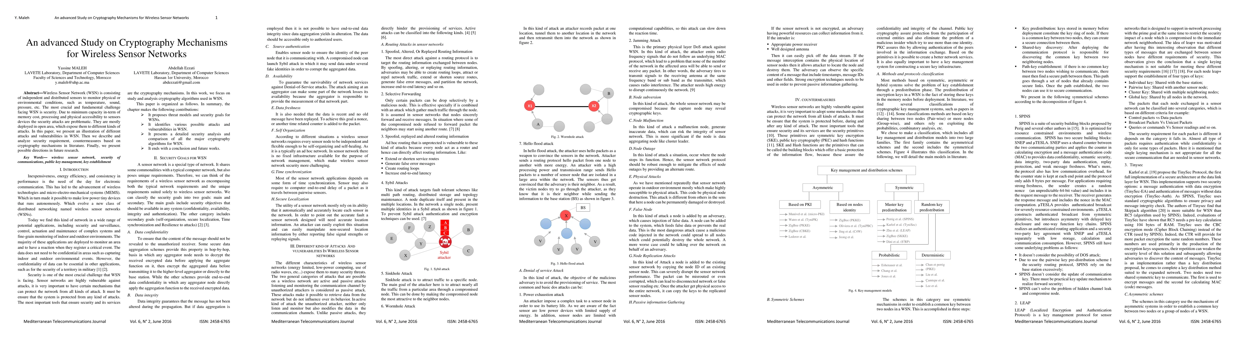 Wireless Sensor Network (WSN) is consisting of independent and distributed sensors to monitor physical or environmental conditions, such as temperature, sound, pressure, etc. The most crucial and fundamental challenge facing WSN is security. Due to minimum capacity in-term of memory cost, processing and physical accessibility to sensors devices the security attacks are problematic. They are mostly deployed in open area, which expose them to different kinds of attacks. In this paper, we present an illustration of different attacks and vulnerabilities in WSN. Then we describe and analyze security requirement, countermeasures based on cryptography mechanisms in literature. Finally, we present possible directions in future research.