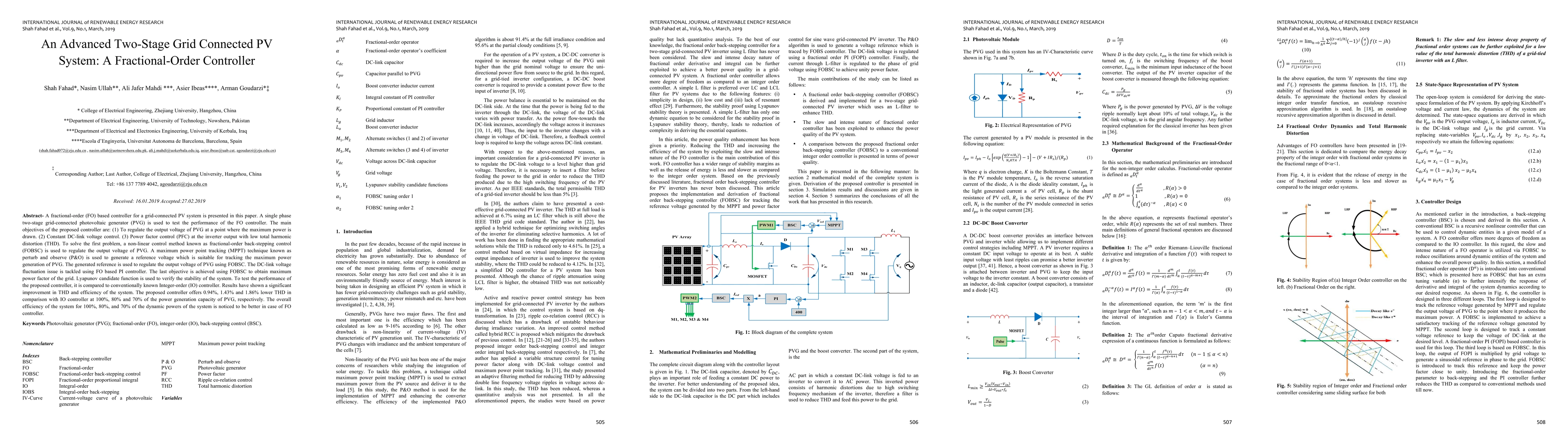 A novel fractional-order controller improves grid-connected PV system performance by regulating output voltage, maintaining DC-link voltage, and controlling power factor with low harmonic distortion.