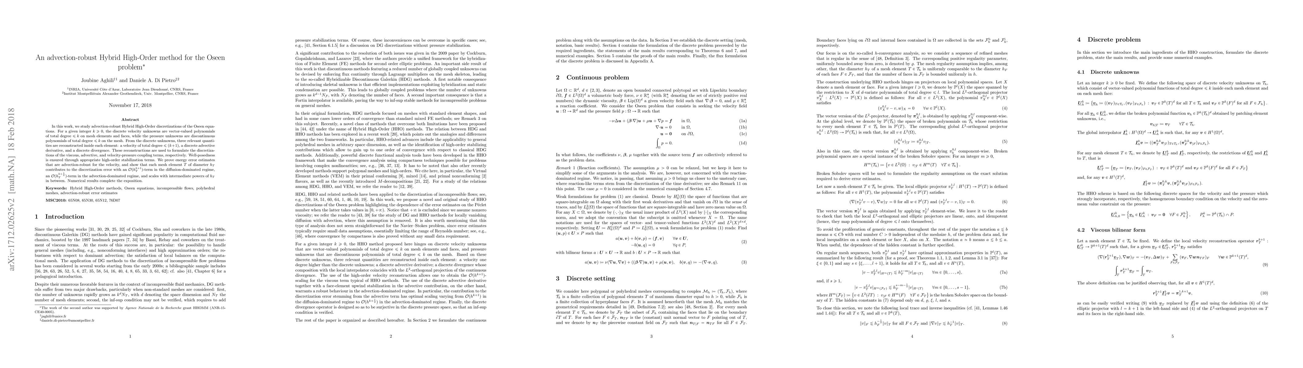 This research introduces an advection-robust Hybrid High-Order method for solving the Oseen equations. It presents energy error estimates that adapt to both diffusion-dominated and advection-dominated regimes, demonstrating element-wise error scaling of O(h_T^(k+1)) and O(h_T^(k+1/2)) respectively, supported by numerical results.