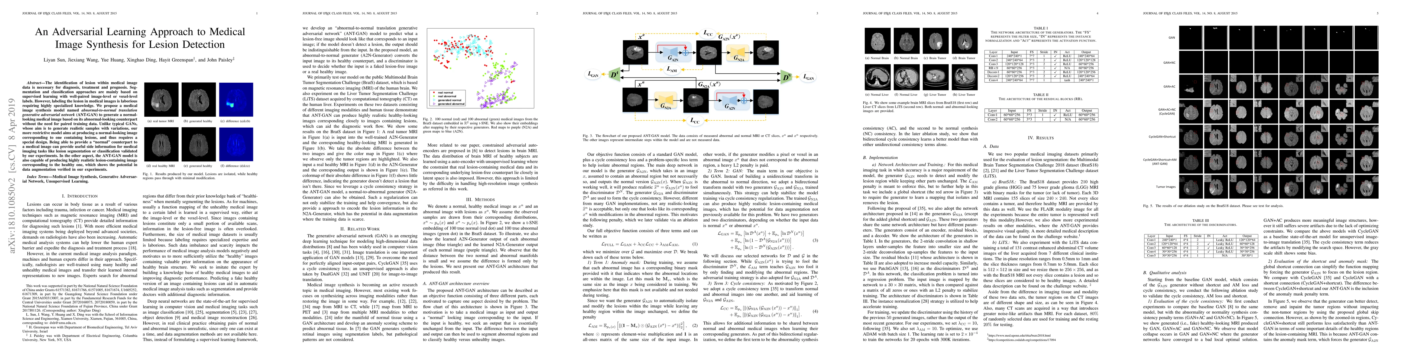 The paper proposes a medical image synthesis model called abnormal-to-normal translation generative adversarial network (ANT-GAN), which generates a normal-looking medical image from its abnormal-looking counterpart without paired training data. The model uses a generator (GA2N) and discriminators (DN and DA) with a unique architecture, including residual blocks and PatchGAN, to focus on lesion regions while preserving non-lesion areas.