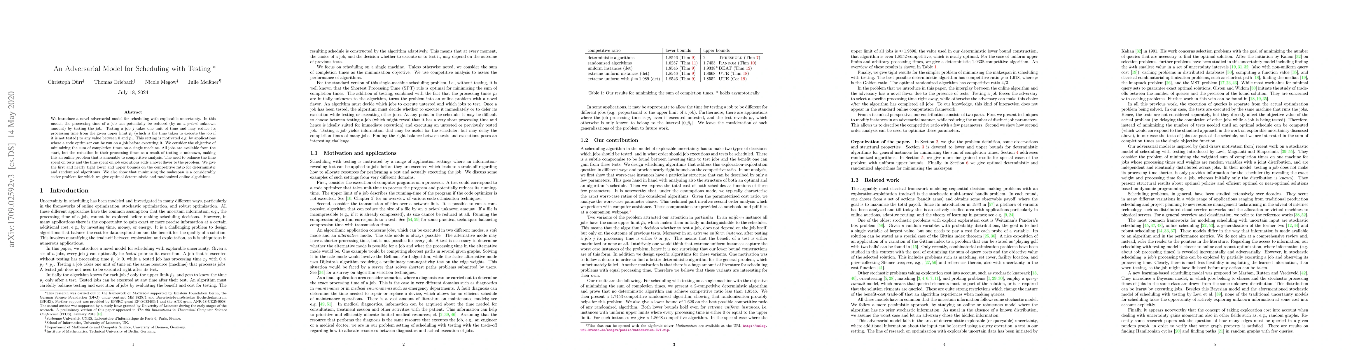 This paper proposes an adversarial model for scheduling jobs with uncertain processing times, where testing can reduce job execution times. The goal is to minimize the sum of completion times, balancing test time against job execution time, and it provides competitive analysis and optimal algorithms for both minimizing completion times and makespan.