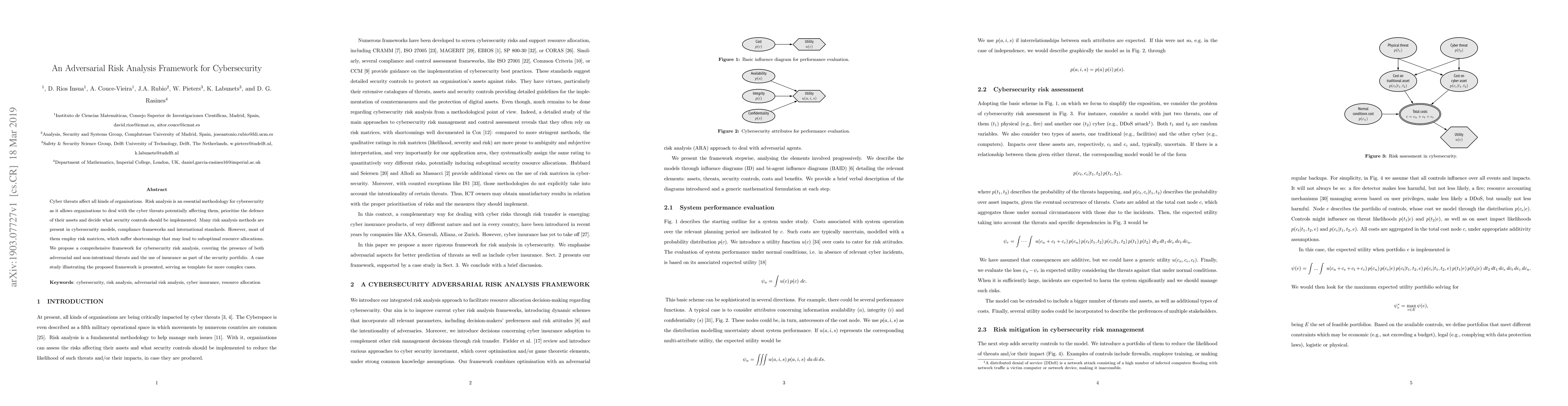The paper proposes a comprehensive Adversarial Risk Analysis (ARA) framework for cybersecurity, which models both intentional and non-intentional threats, and incorporates insurance as part of the security portfolio. The framework is demonstrated through a case study.