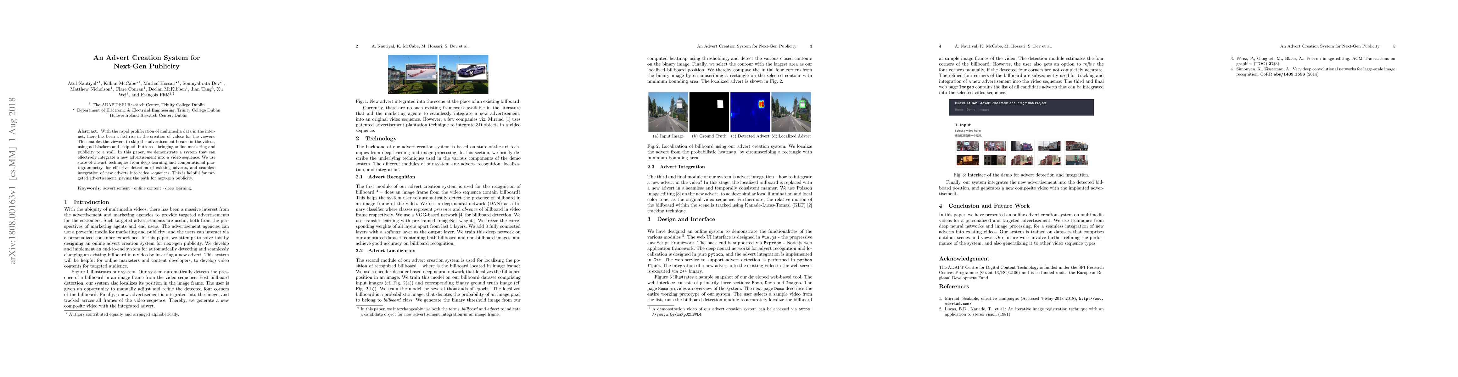This research paper introduces a system to seamlessly integrate new ads into video sequences using deep learning and computational photogrammetry, aiming to revive online marketing and publicity.