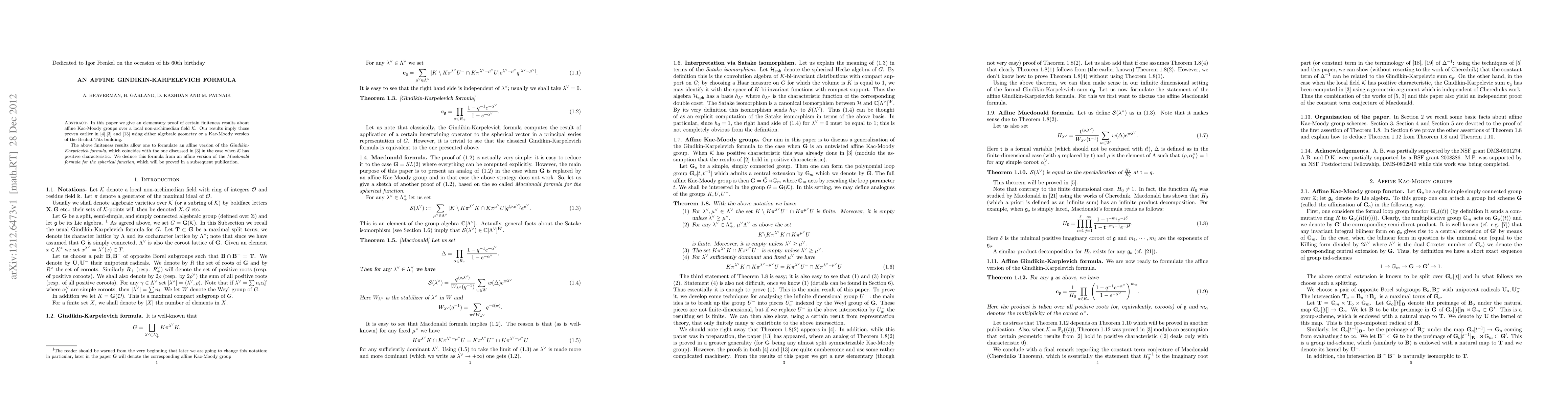 This paper provides an elementary proof for finiteness results regarding affine Kac-Moody groups over a local non-archimedian field, implying previous results by Braverman-Kazhdan et al. It formulates an affine Gindikin-Karpelevich formula, aligning with Braverman-Finkelberg-Kazhdan's findings for fields of positive characteristic.