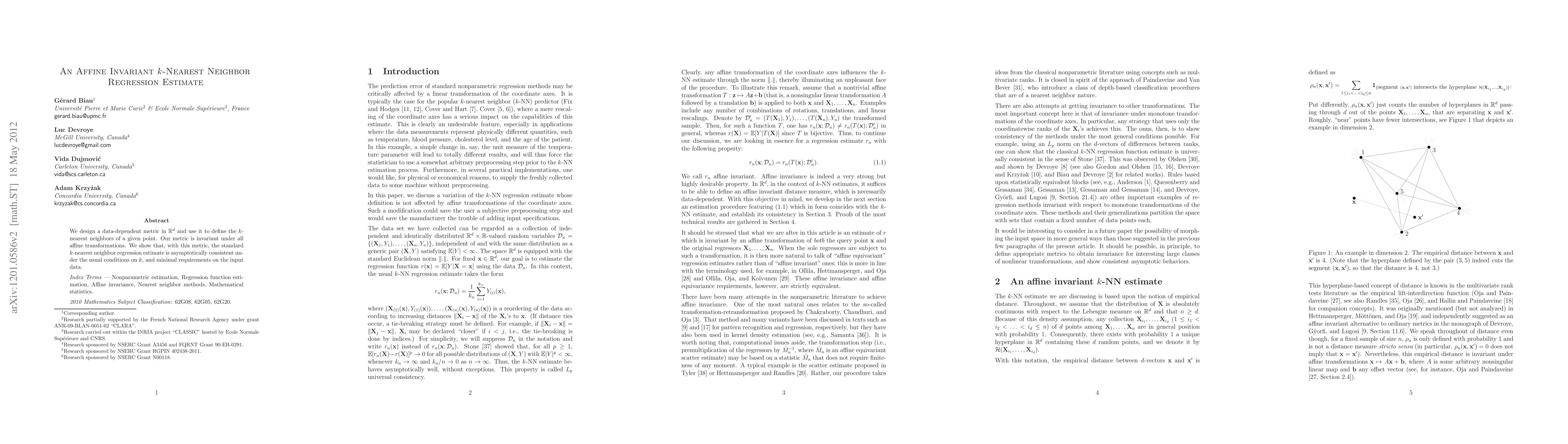 This paper introduces an affine invariant metric for defining $k$-nearest neighbors in $\mathbb R^d$ and demonstrates that the $k$-nearest neighbor regression estimate using this metric is asymptotically consistent under standard conditions. The proposed metric maintains its properties under all affine transformations.