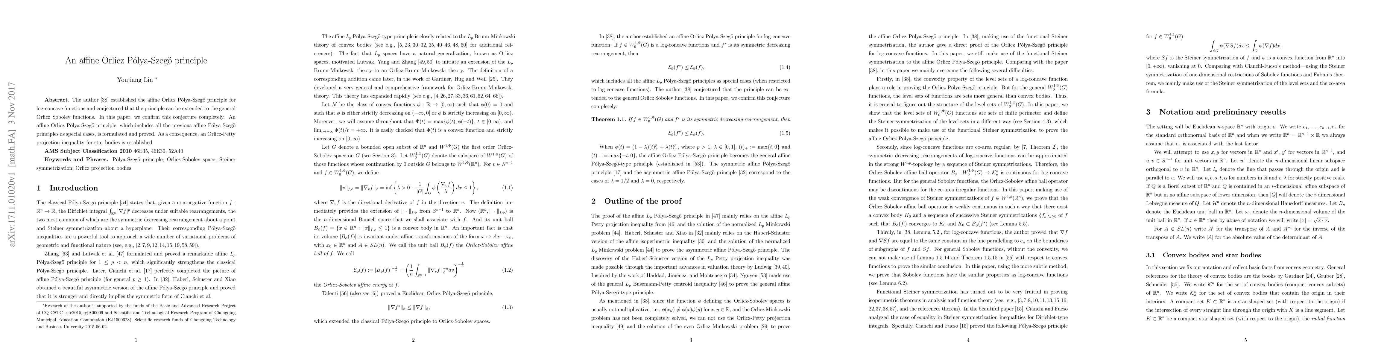 The paper confirms the conjecture of extending the affine Orlicz Polya-Szego principle to general Orlicz Sobolev functions, establishing the principle for log-concave functions and deriving an Orlicz-Petty projection inequality for star bodies.