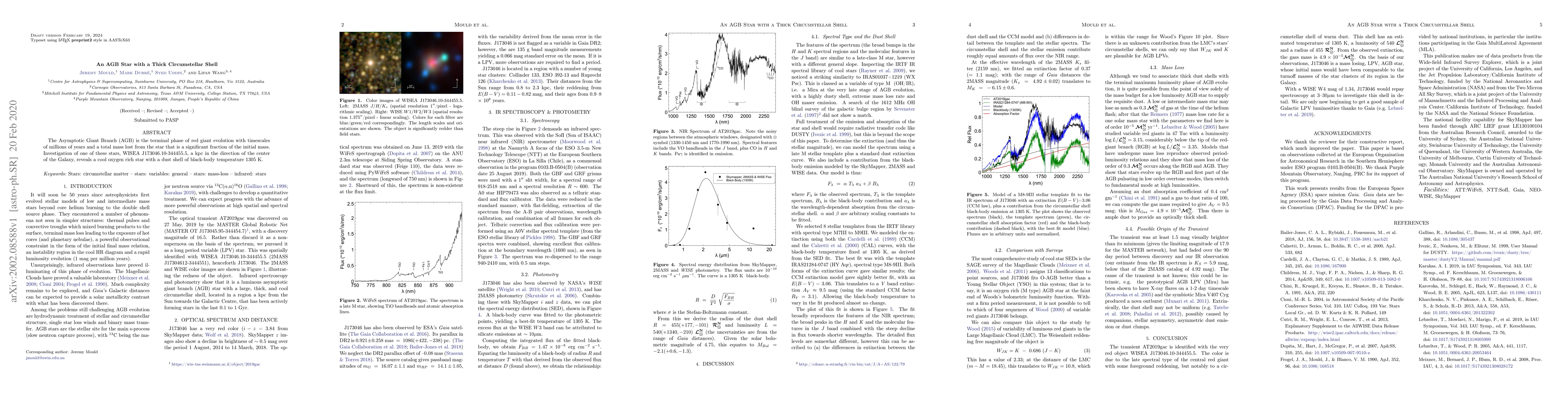 The Asymptotic Giant Branch (AGB) is the terminal phase of red giant evolution with timescales of millions of years and a total mass lost from the star that is a significant fraction of the initial mass. Investigation of one of these stars, WISEA J173046.10-344455.5, a kpc in the direction of the center of the Galaxy, reveals a cool oxygen rich star with a dust shell of black-body temperature 1305 K.