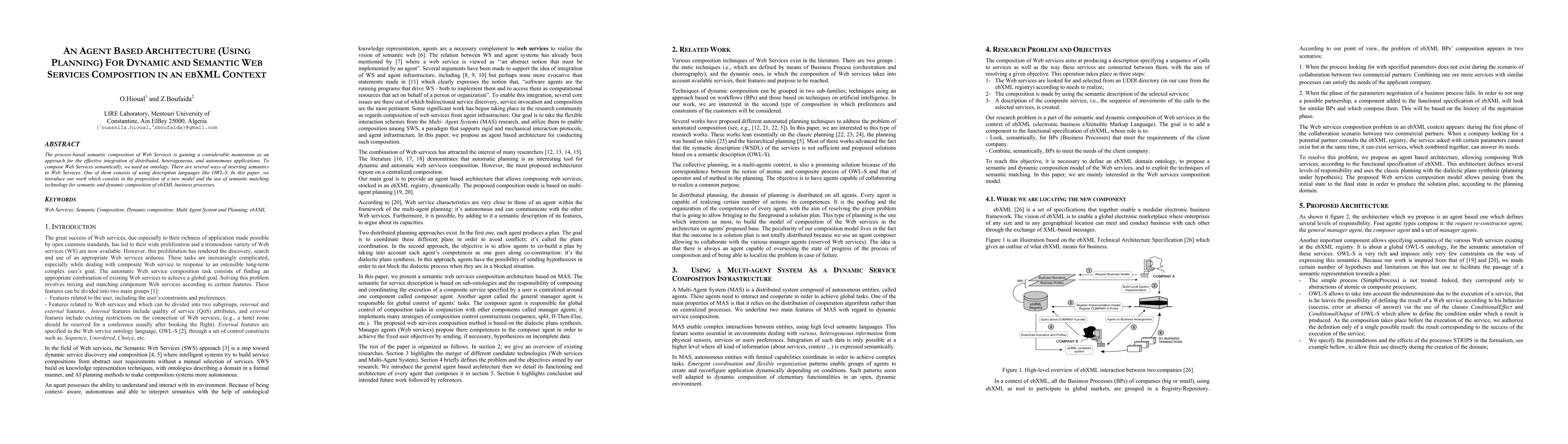 Researchers propose a new agent-based architecture for composing dynamic and semantic web services using planning, aiming to improve integration of heterogeneous applications. This approach uses semantic matching technology to create ebXML business processes.