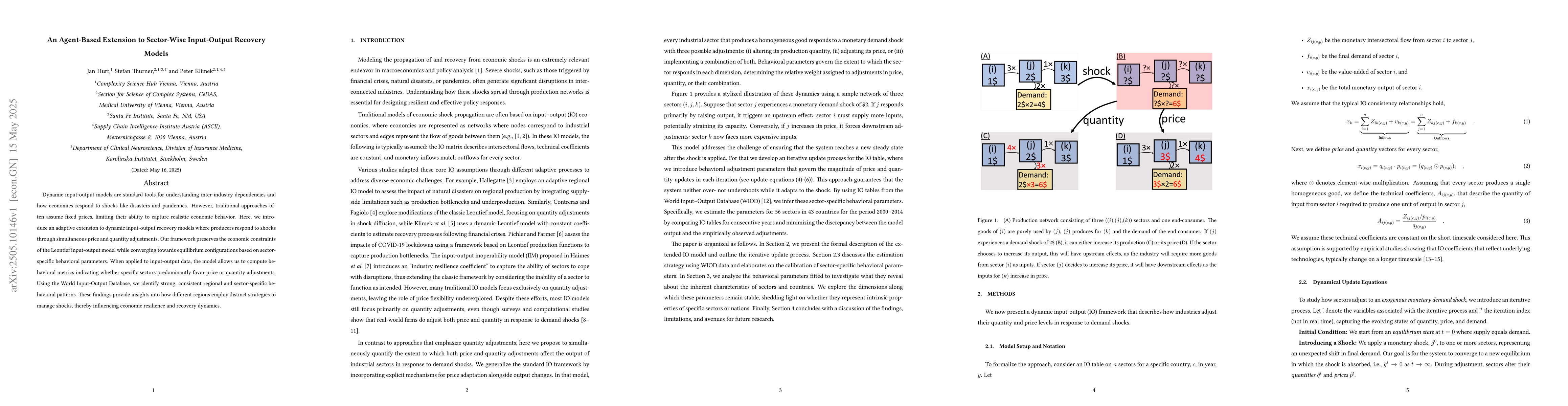The research introduces an adaptive extension to dynamic input-output recovery models, allowing producers to respond to shocks through simultaneous price and quantity adjustments while preserving Leontief model constraints.