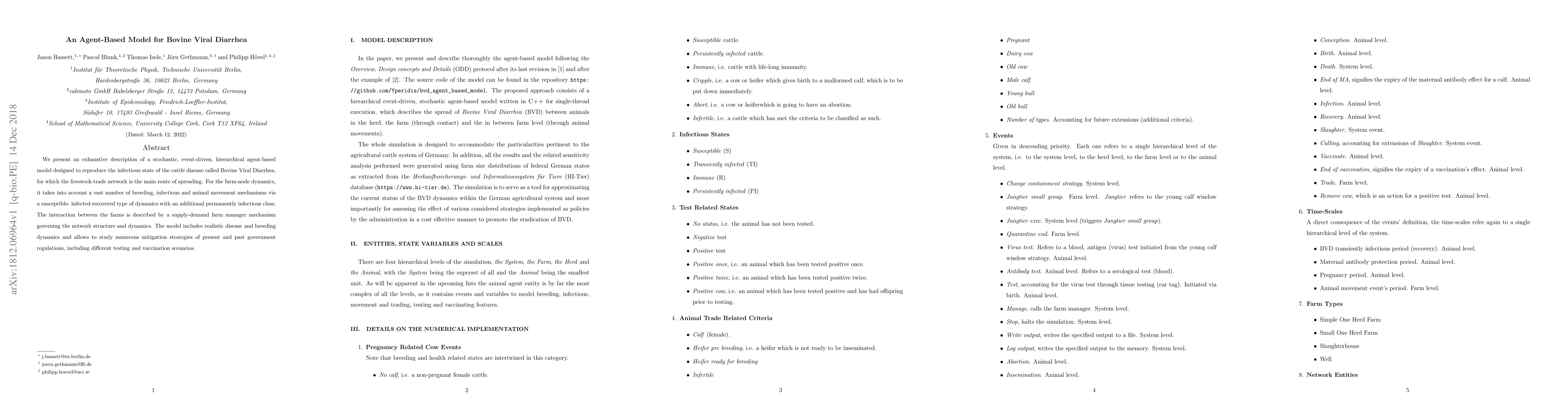 We present an exhaustive description of a stochastic, event-driven, hierarchical agent-based model designed to reproduce the infectious state of the cattle disease called Bovine Viral Diarrhea, for which the livestock-trade network is the main route of spreading. For the farm-node dynamics, it takes into account a vast number of breeding, infectious and animal movement mechanisms via a susceptible-infected-recovered type of dynamics with an additional permanently infectious class. The interaction between the farms is described by a supply-demand farm manager mechanism governing the network structure and dynamics. The model includes realistic disease and breeding dynamics and allows to study numerous mitigation strategies of present and past government regulations, including different testing and vaccination scenarios.