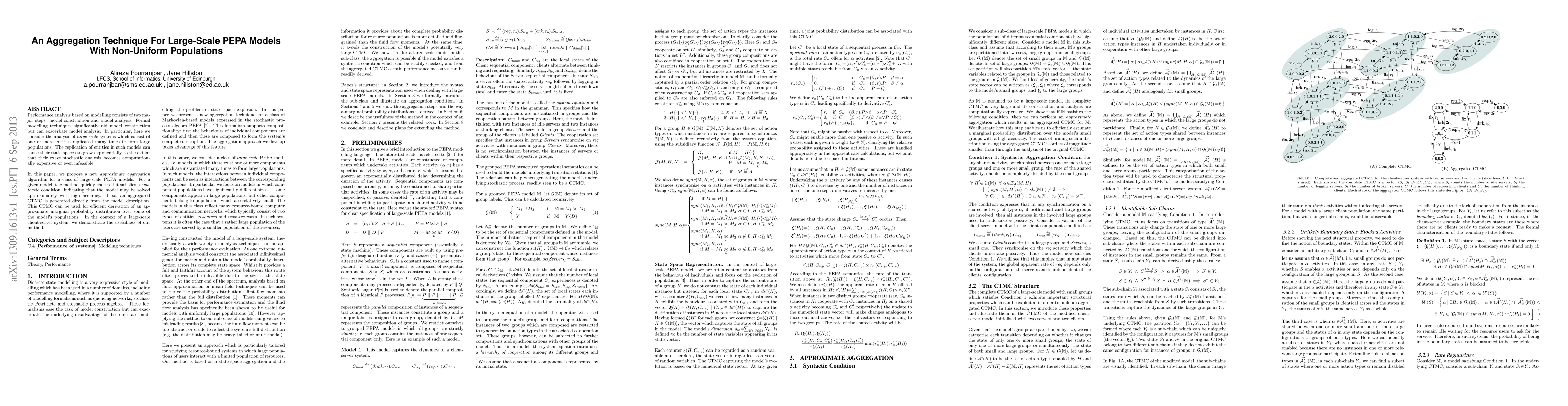 Performance analysis based on modelling consists of two major steps: model construction and model analysis. Formal modelling techniques significantly aid model construction but can exacerbate model analysis. In particular, here we consider the analysis of large-scale systems which consist of one or more entities replicated many times to form large populations. The replication of entities in such models can cause their state spaces to grow exponentially to the extent that their exact stochastic analysis becomes computationally expensive or even infeasible. In this paper, we propose a new approximate aggregation algorithm for a class of large-scale PEPA models. For a given model, the method quickly checks if it satisfies a syntactic condition, indicating that the model may be solved approximately with high accuracy. If so, an aggregated CTMC is generated directly from the model description. This CTMC can be used for efficient derivation of an approximate marginal probability distribution over some of the model's populations. In the context of a large-scale client-server system, we demonstrate the usefulness of our method.