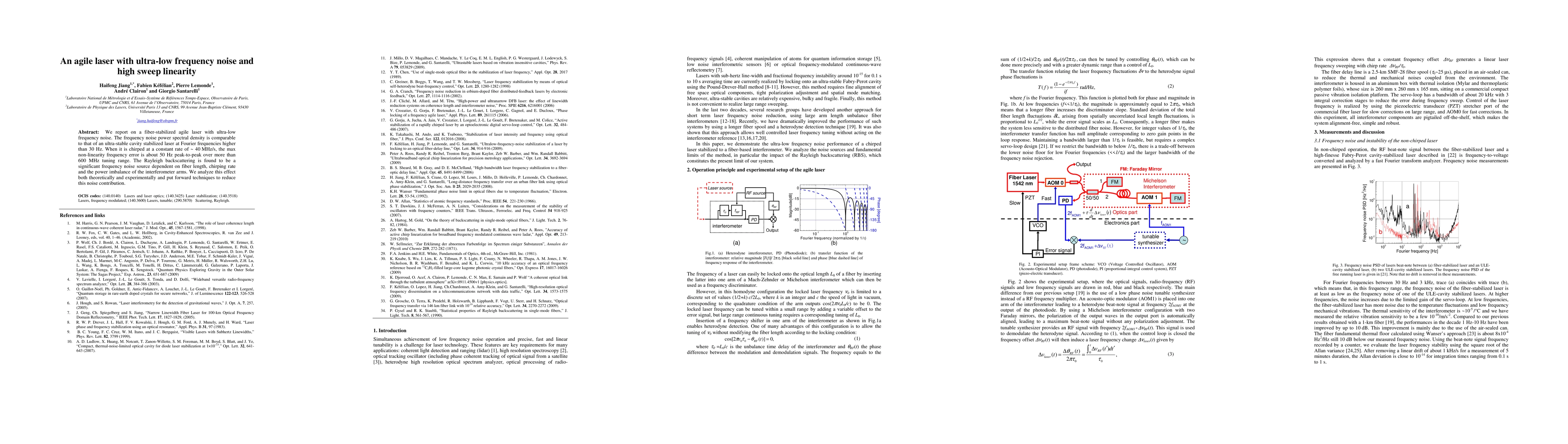 The development of a fiber-stabilized agile laser with ultra-low frequency noise, employing a tunable synthesizer and Michelson interferometer for precise frequency control and measurement.