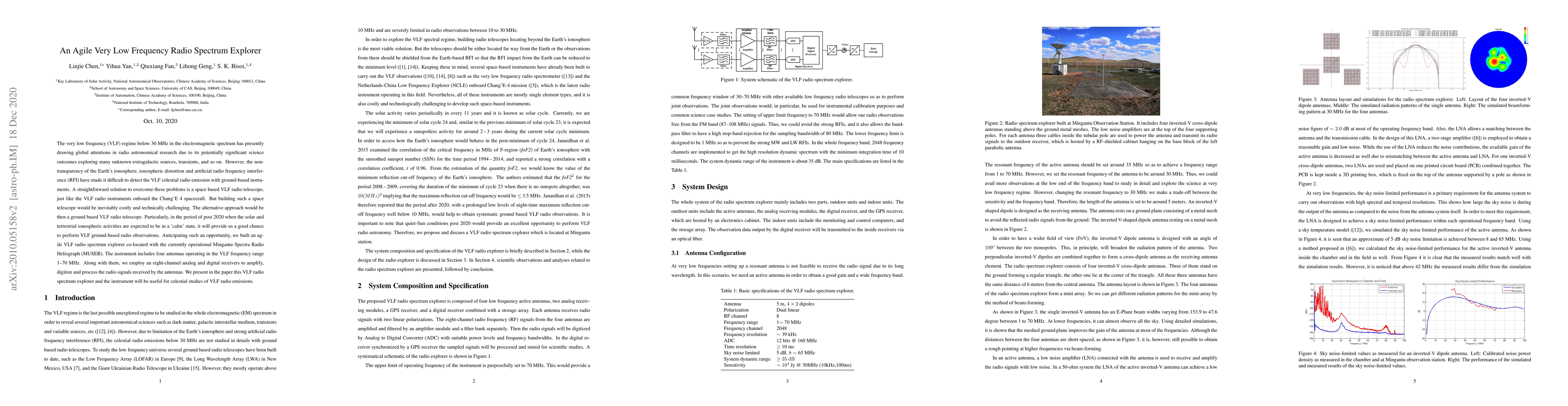 A space-based VLF radio telescope is challenging to build, but a ground-based version has been developed using four antennas and eight-channel receivers to explore VLF celestial radio emissions.